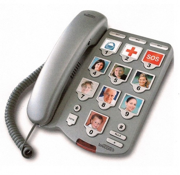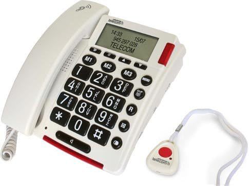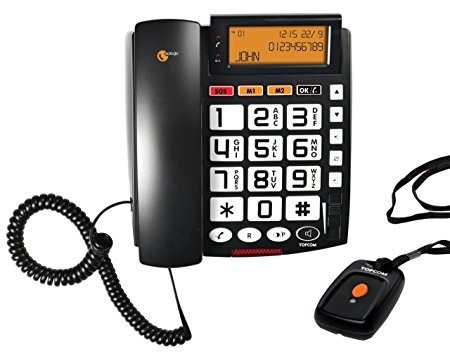TOPCOM telefono con marcacion por voz, teclado con voz memorias con voz, colgante para llamadas de emergencias